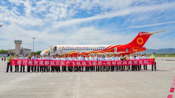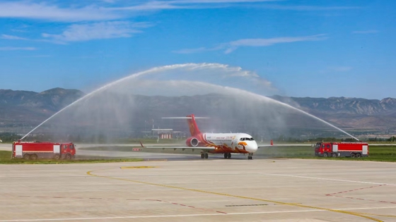 2023年7月6日上午9時(shí)30分,成都航空“金沙號”ARJ21飛機穩穩地降落在寧夏回族自治區固原市六盤(pán)山機場(chǎng),標志著(zhù)ARJ21成都—固原航線(xiàn)首航成功。